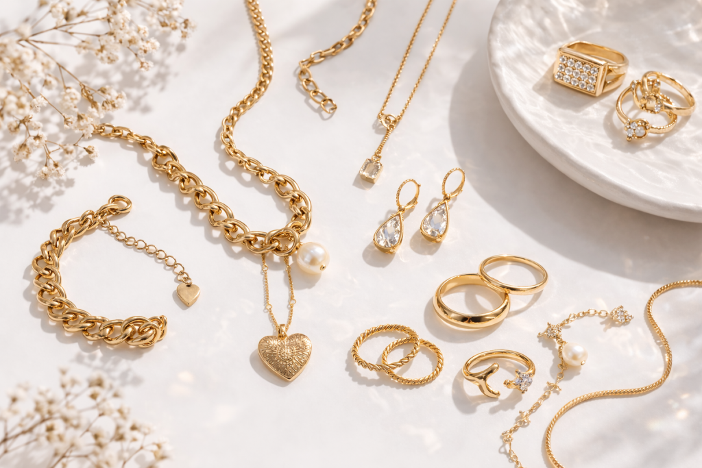 Chez nous, chaque bijou est pensé pour vous accompagner tous les jours. On utilise de l’acier inoxydable solide et brillant, du laiton plaqué or ou argent, tout ça pour que vos pièces restent belles, résistantes et hypoallergéniques. En gros : du style, de la qualité, et zéro compromis pour votre confort.