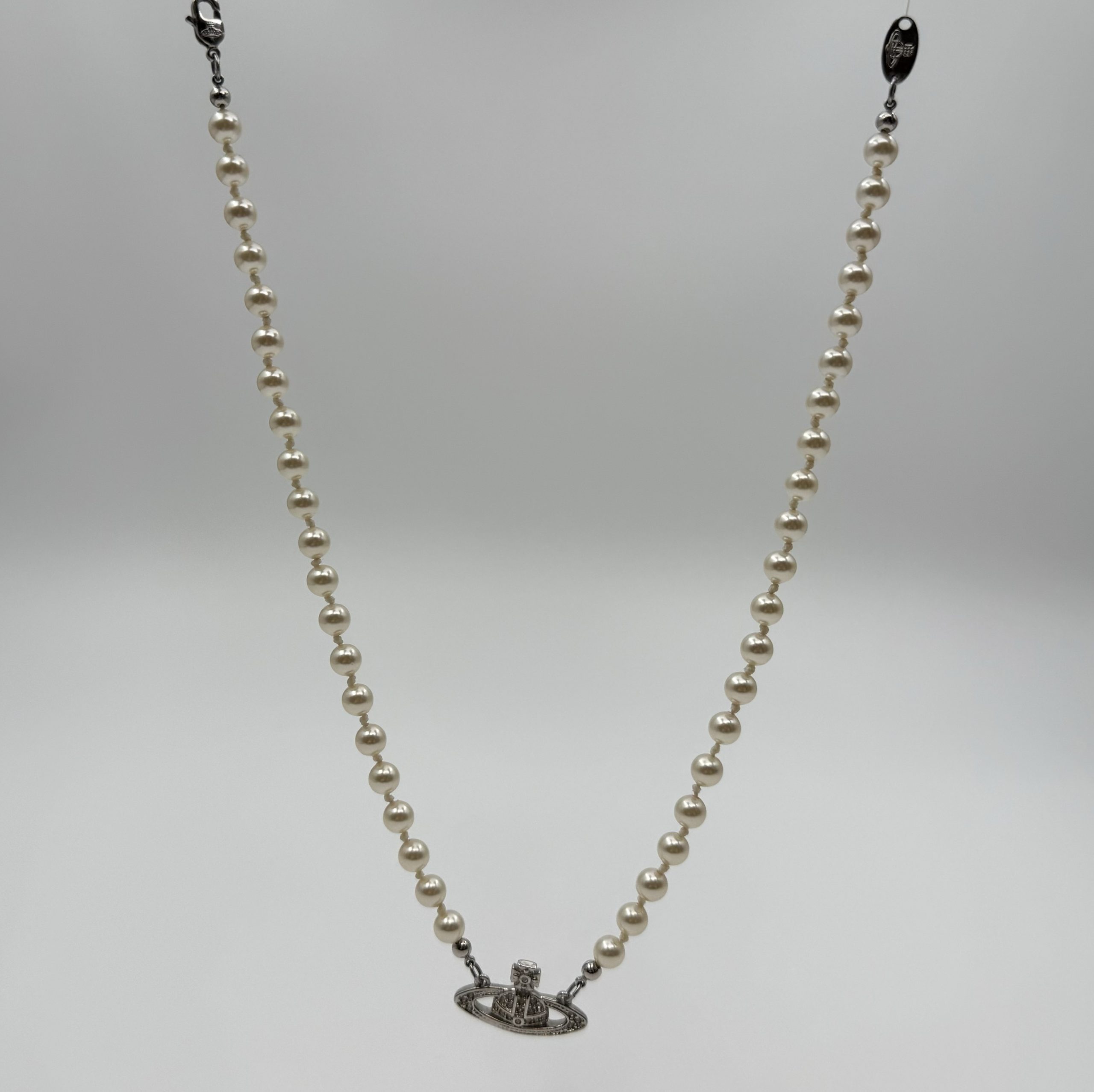 Sa rangée de perles nacrées à l’éclat satiné encadre parfaitement le visage, tandis que son pendentif apporte une touche mystique et structurée. C’est le collier idéal pour celles qui veulent casser les codes avec sophistication.